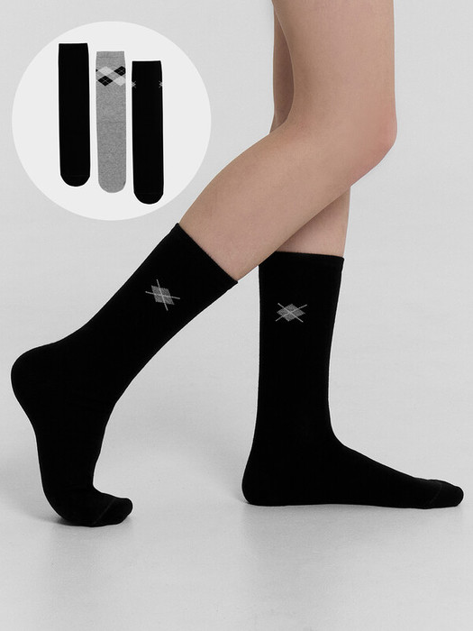 Мультипак из трех пар гладких  детских носков с рисунком в виде ромбов и диагональной полоски.