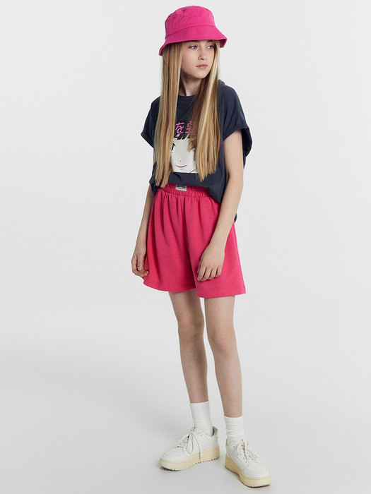 Шорты свободного силуэта из трикотажного футера. Широкий пояс с эластичной тесьмой внутри дарит комфорт. Рекомендуем для вашей девочки!