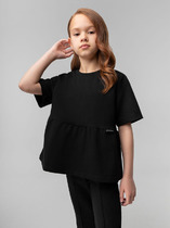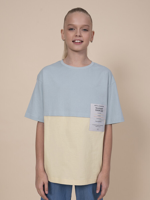 Футболка оверсайз для девочки. 100% хлопок в составе – ткань мягкая, дышащая, приятная на ощупь. Жаккардовая нашивка с вытканным текстом – яркий визуальный акцент и изюминка модели, сохраняет декоративность при частых стирках. Имитация двухслойности – тренд сезона. Верх модели имитирует кроп-топ. Футболка отлично подходит для создания стильного образа весной и летом в паре с джоггерами или шортами. Идеальна для активного детства – на каждый день, для учебы и занятия спортом.