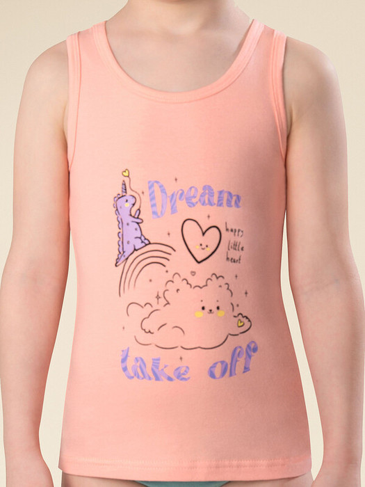 Каждая мама заботится о комфорте своего ребёнка и хочет выбрать для него только действительно качественное бельё. Наша красивая майка для девочки отлично подходит под эти запросы. Модель выполнена из ткани с высоким содержанием хлопка — она приятна на ощупь, великолепно пропускает воздух, позволяя коже ребёнка дышать. Эластан помогает изделию сохранять отличную форму в течение длительного времени. Качественная ткань и правильный крой гарантируют идеальную посадку— ребёнок чувствует себя комфортно целый день. Горловина и проймы обработаны эластичным пайпингом в тон — они не растягиваются и надолго сохраняют прекрасный внешний вид. Модель представлена в трендовых оттенках "персиковый бисквит" и "голубой топаз". Персиковый и голубой - очень нежные, по-настоящему девичьи цвета. Ваша дочка будет в восторге! Майка декорирована милым принтом с дракончиком-единорогом и позитивным текстом. Перевод: "Мечтай Взлезай, счастливое маленькое сердечко". Принт мягкий и устойчивый, отлично переносит стирки. Такая майка — идеа