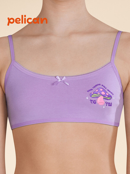 Укороченный топ для девочки. Бра выполнено из ткани с высоким содержанием хлопка — топ мягкий, дышащий, гипоаллергенный. Эластан обеспечивает модели прекрасную форму на протяжении длительного времени. Благодаря качественному материалу и правильному крою детский топ комфортно садится по телу. Тонкие мягкие бретели не сползают, исключают трение и раздражение. По проймам окантовка из пайпинга в тон изделия, благодаря чему они не растягиваются. Бра украшено позитивным принтом в виде грибочка, надпись переводится: «хорошие вещи произойдут с тобой», принт устойчивый и не боится частых стирок. Стильный топ обязательно понравится каждой маленькой моднице. Кроп топ детский отлично подходит для носки под одеждой. Помните о правильном уходе за изделием: рекомендуется стирать при температуре не выше 30 °C, без предварительного замачивания, с изнанки. Это поможет сохранить качество и цвет топа на длительное время.