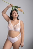 Бюстгальтер классической формы с формованной чашкой с небольшим Push-up по низу. Детали изделия выполнены из эластичного полотна и эластичного кружева. Бретели эластичные, съемные. Центральная деталь декорирована бантиком из атласной ленты.