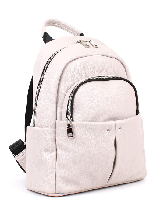 Рюкзак женский, с одним отделением. На передней стенке большой карман на молнии, карман на кнопке. На задней стенке карман на молнии. Внутри рюкзака два кармана для мелочей. Высота ручки 9 см, регулируемые по длине наплечные ремни.
