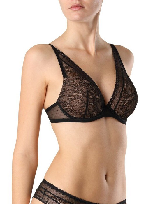 В серии Tandem изящно сочетаются кружевное полотно с цветочным рисунком и эффектом клиппинга, сетка «в горошек» и узкое кружево, что придает ей легкость и в то же время подчеркивает характер современной девушки. *Клиппинг – особая технология создания выразительных и деликатных рисунков, соединенных тонкой нитью, которая впоследствии обрезается на специальной машине. В итоге на поверхности кружева можно заметить маленькие узелки, свидетельствующие о благородном происхождении полотна.