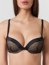 Бюстгальтер женский t-shirt, на каркасах 2 типа, с формованной чашкой СN-53м. Верхняя деталь чашки выполнена из подформованного полотна. Ластовица из микрофибры на подкладке из монокапрона. Бочки из сетки эластичной с флоком. Пройма, верхний и нижний срезы стана обработаны в два приема эластичной тесьмой 10 мм (жесткая без зуба WTWE1-10, девсел 487W). Бретель 10 мм (SWE3-10, девсел 1979W) и 15 мм (SWE3-15, девсел 1979W) по размерам с регулировкой по длине. Кольца-регуляторы 10 мм и 15 мм. Застежка двойная 28 мм и 38 мм (по размерам).