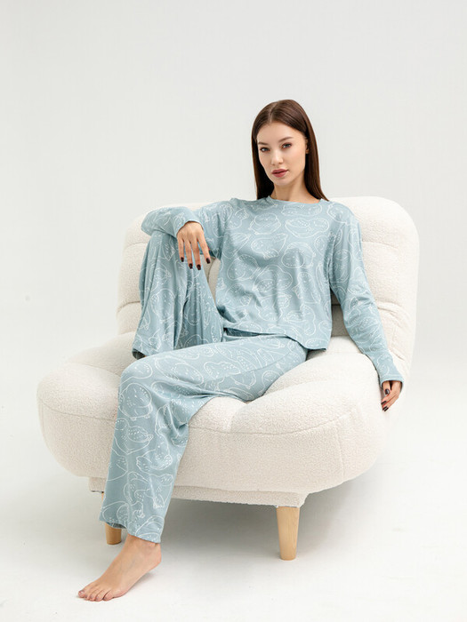 Хлопковый домашний комплект для женщин. Состоит из расслабленного лонгслива и брюк свободного силуэта. Лонгслив с круглым вырезом, длинными рукавами. Брюки прямые, с эластичной тесьмой в поясе. Рекомендуем для крепких снов и домашних дел!