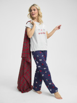 Горловина круглой формы с притачной обтачкой из основного полотна. Рукава длинные втачные. Перед и спинка цельнокроеные. Низ джемпера и рукавов обработан швом в подгибку. Брюки длинные, немного заужены к низу. Пояс цельнокроенный с эластичной тесьмой внутри. Низ брюк застрочен с эластичной тесьмой внутри.