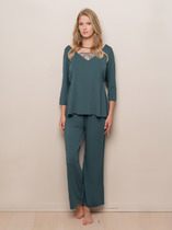 Комплект женский состоит из джемпера и шорт. Джемпер прямой, свободный. Горловина круглая обработана обтачкой из основного полотна. Рукава втачные, короткие. Нижние срезы джемпера и рукавов обработаны швом вподгибку. Шорты короткие, свободные. Посадка высокая. Пояс цельнокроеный с эластичной тесьмой внутри (внутренняя 30мм 30RV). Нижние срезы шорт обработаны швом вподгибку.