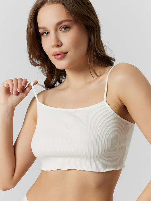 Стильный топ на тонких бретелях. Выполнен из хлопковой трикотажной рибаны в рубчик. Особенность модели – закрученный нижний срез. Идеальное решение для теплого времени года!