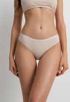 Трусы женские классического силуэта  со средней посадкой из интерлока. Передняя  деталь цельная. Ластовица цельная на подкладке из кулирного полотна, отлетная по переднему краю, обтачная по боковым срезам