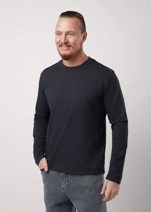 Стильный мужской джемпер из фактурного полотна. Изделие с круглым вырезом горловины и длинным рукавом. Идеальный вариант для повседневного использования. Хорошо сочетается с джинсами и брюками.