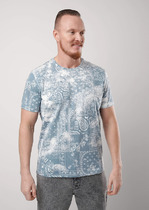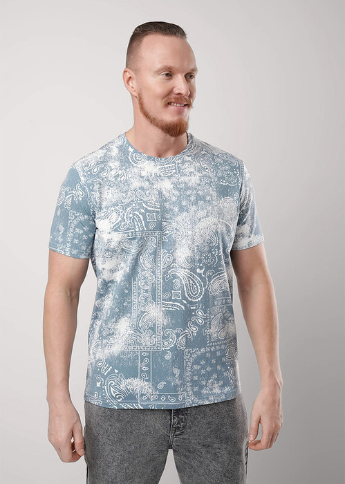 Мужская футболка из трикотажного полотна с абстрактной набивкой, прекрасное решение для похода на работу или прогулки с друзьями. Данная модель отлично впишется в любой гардероб и составит комплект с брюками или джинсами.