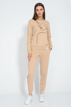Комплект из трикотажного ажурного полотна. Изделие плотно прилегает к телу, не сковывает движений и подчеркивает силуэт. По низу джемпера нашивка с силиконовой печатью. Леггинсы без боковых швов и цельнокроеным поясом с эластичной резинкой внутри.