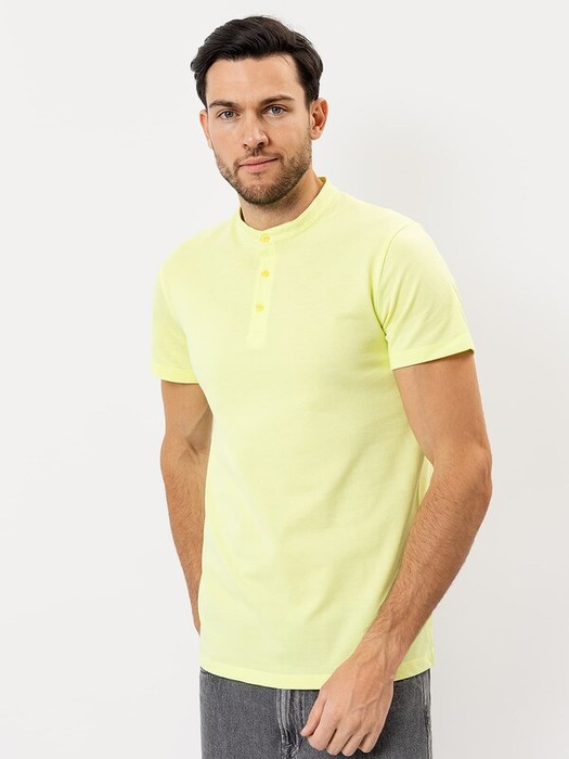 Стильная футболка поло с оригинальным воротником-стойкой и удобной застежкой на 3 пуговицы. Благодаря лаконичному дизайну, прямому силуэту и комфортной длине до середины бедер она наверняка станет любимой в гардеробе, ведь отлично подходит практически ко всему.
