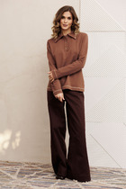 Брюки с посадкой на талии, прямого силуэта. Пояс цельнокроеный с резиной внутри. Низ брюк обработан швом в подгибку.