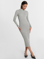 Однотонное платье женское с длинными рукавами, прилегающего силуэта из высококачественного хлопка в рубчик. Вырез круглый, с воротником-стойкой. Рукава длинные, облегающие. Длина модели чуть ниже колена. Отличное базовое платье, которое станет основой вашего стильного образа. Такое платье точно не будет ждать своего часа на полке в шкафу. В осенне-зимний период так хочется надеть что-то максимально комфортное и  уютное - эта модель именно такой вариант. Облегающее платье не стесняет движений, очень комфортное в носке. Идеально подойдет для прогулок, встреч с друзьями, свидания и похода в кино. Рекомендуем!