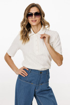 Горловина круглой формы, плотно прилегающая к шее, обработана притачной бейкой из рибаны, шов притачивания отстрочен на основное полотно. Плечо спущено, пройма углублена, с прямыми срезами. Шов втачивания рукава расстрочен (одна строчка по рукава, вторая по переду/спинке) .