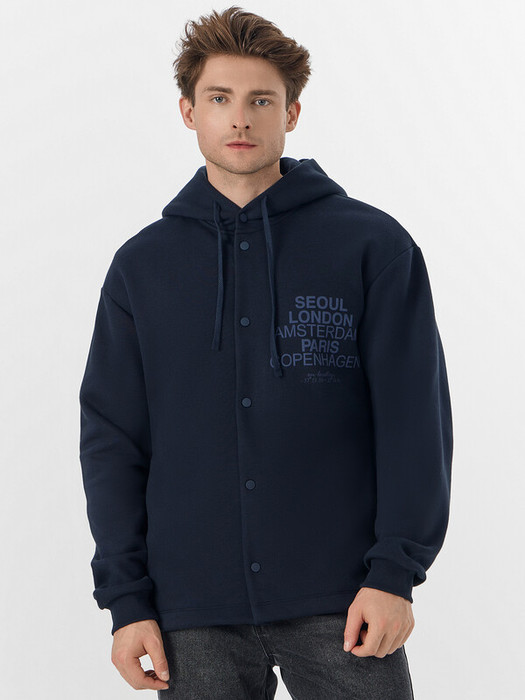 По переду обработана центральная застежка на кнопки, верхняя кнопка распологается на капюшоне.