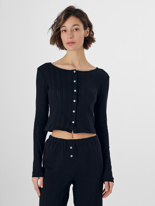 Прилегающий силуэт с овальной горловиной и длинными рукавами создаёт аккуратный и лаконичный вид. Застёжка на пуговицы добавляет практичности и позволяет легко регулировать посадку. Все края аккуратно обработаны для долговечности и опрятного внешнего вида.