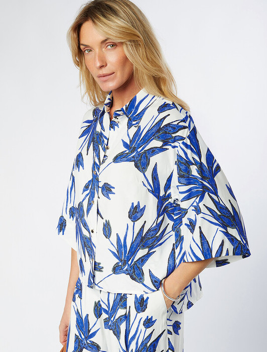 27.03 Vilatte Блузка из вискозы с лиоцеллом D29.263 синий-белый