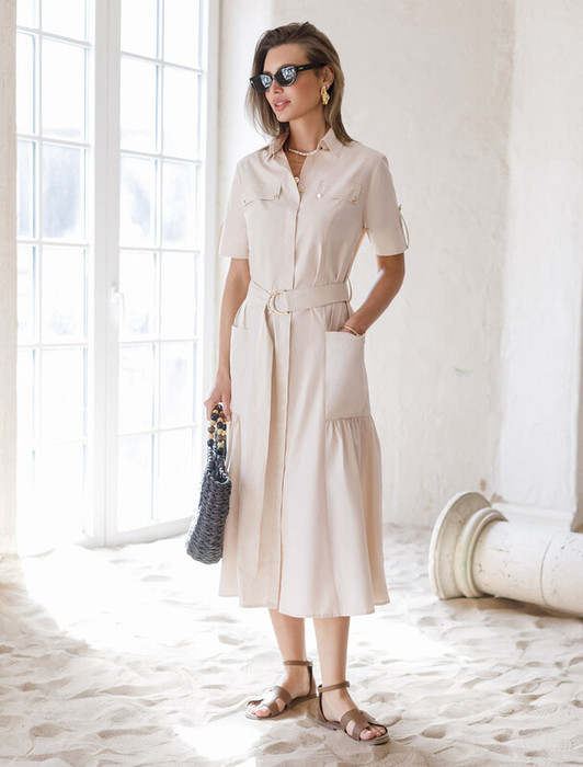 Совместные покупки Уфа Женская одежда Платья — 27.03 Vilatte Платье из легкого хлопкового поплина D22.206 светло-бежевый