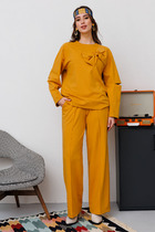 Брюки свободного кроя выполнены из плотного лиоцелла. Модель дополнена карманами и поясом с эластичной резинкой и регулируемым шнурком с золотистой фурнитурой. Ткань изделия отлично держит форму, плавно драпируется и не просвечивает. В теплое время года приятно охлаждает кожу. Добавление синтетических волокон в составе изделия, предотвращает сминаемостьи поддерживает формоустойчивость. Брюки сочетаются в костюме с топом D23.063, блузкой D29.266, D29.267 и жилетом D27.002