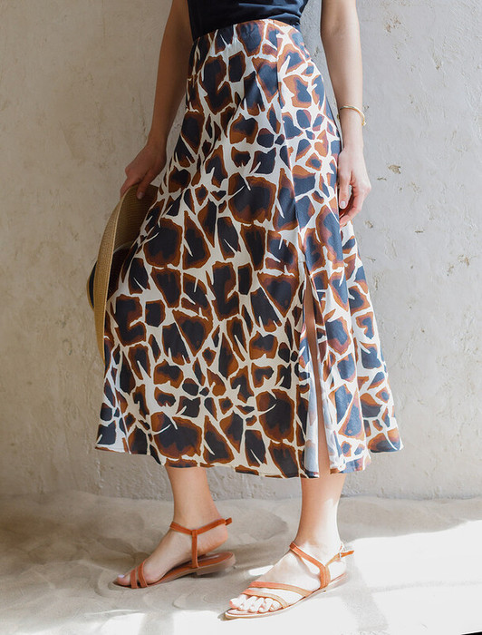 27.03 Vilatte Юбка из вискозы с лиоцеллом D26.195 бежевый-коричневый