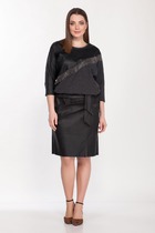 Юбка выполнена из вискозы с лиоцеллом. Модель А-силуэта кроенная по косой. Ткань изящно блестит и приятно охлаждает кожу в жаркое время года. Модель сечетается в костюме с топом D23.062 и блузкой D29.263