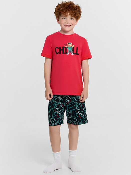 Универсальная пижама для мальчиков из высококачественного хлопка. Состоит из футболки с коротким рукавом и шорт. Футболка свободная, с круглой горловиной. Шорты длиной до колен, с эластичной тесьмой в поясе. Изготовлена пижама для мальчика из высококачественного натурального материала, что обеспечивает комфорт как в летний, так и в зимний период.  Материал отлично тянется, хорошо впитывает влагу и быстро сохнет, не сковывает движений и не создает парникового эффекта. Отличный вариант для каждодневной носки. Пижама детская для подростка мальчика отлично подходит для отдыха в комфортной домашней обстановке и сна. В линейке много интересных расцветок, есть красивые варианты с принтами. Если вы устали от простых и не замысловатых моделей и хотите разнообразить гардероб вашего ребенка, этот вариант порадует. Такая пижама понравится всем мальчикам и подросткам, ведь она выполнена в ярких цветах и украшена рисунками. Купить пижаму детскую недорого можно у нас на сайте и в магазинах Mark Formelle!