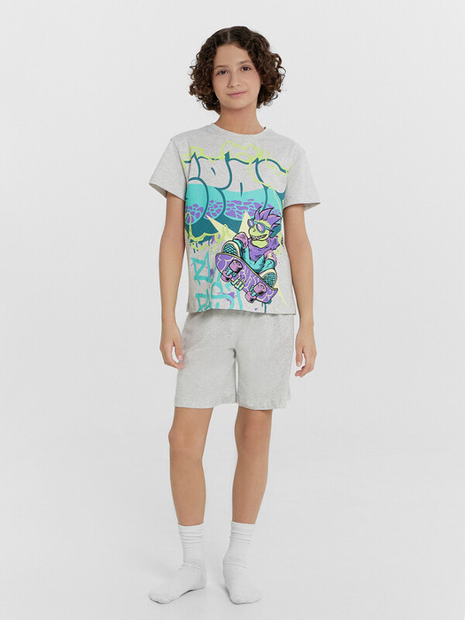 Комплект для мальчиков состоит из футболки и шорт. Футболка прямого силуэта с короткими рукавами. Горловина круглой формы. Шорты длиной до колен. Пояс с эластичной тесьмой внутри. Футболка имеет удобный крой и отличную посадку. Выполнена из 100% хлопка, обеспечивает мягкость и комфорт во время сна. Шорты оснащены эластичным поясом с регулируемым шнурком для комфортной посадки. Пижама идеально подходит ребятам, которые ценят удобство и стильные вещи. Широкий размерный и цветовой ряд. Рекомендуем!