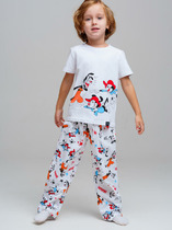 Худи свободного силуэта для мальчиков с капюшоном. Горловина округлой формы. Капюшон со средним швом, на подкладке из основного полотна. Плечо спущено, рукав втачной длинный. По низу рукава отрезная манжета из рибаны. Пояс отрезной из рибаны.Брюки для мальчиков. Без бокового шва. Карманы в вытачке. Пояс отрезной с внутренней эластичной тесьмой. Пояс прострочен двумя отделочными строчками. Внутри в пояс втянут шнур. Низ брюк обработан манжетами из рибаны.