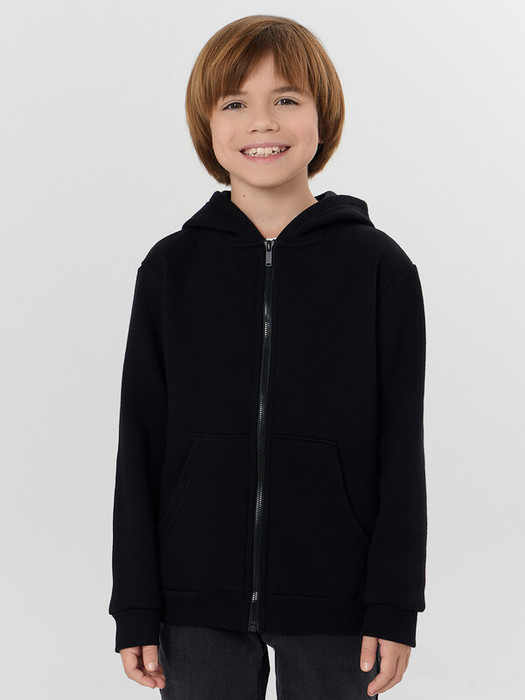 Стильная спортивная толстовка на молнии для мальчиков. Выполнена из теплого и нежного трикотажного футера с подчесом. Прямой свободный силуэт дополнен уютным капюшоном и удобным карманом-кенгуру. Рукава длинные, линия плеча немного спущена. Рекомендуем для прохладной погоды!