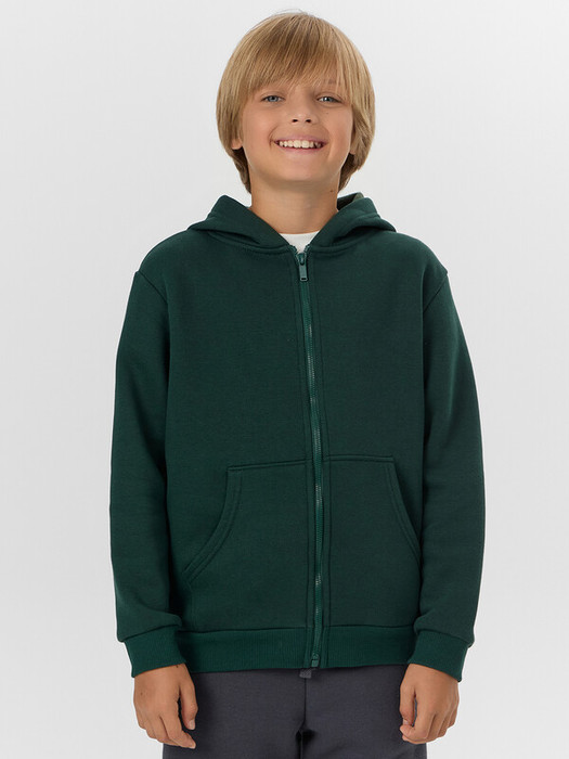 Стильная спортивная толстовка на молнии для мальчиков. Выполнена из теплого и нежного трикотажного футера с подчесом. Прямой свободный силуэт дополнен уютным капюшоном и удобным карманом-кенгуру. Рукава длинные, линия плеча немного спущена. Рекомендуем для прохладной погоды!