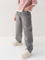 Джинсы багги для девочки подростка. Свободный крой baggy, выполнены из вареного синего денима. Спереди удобные боковые карманы, сзади — накладные. Застежка на молнию и болт. На поясе предусмотрена регулировка за счёт внутренней резинки с пуговицей. Украшены декоративным лейблом на спинке.