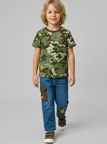 Стильные джинсы для девочки. Модель с зауженным кроем Slim fit и удобной средней посадкой. Пояс на резинке с розовой декоративной завязкой. Сзади — два кармана, один из которых украшен розовым принтом. На штанинах — яркий и милый принт с изображениями кошек и следами лапок. Вся отделка — в анималистичном стиле: пояс, карманы и низ брюк декорированы чёрно-белым принтом.