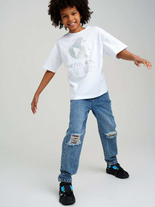 Джинсы из эластичного денима. Посадка regular fit – классический крой со слегка зауженным силуэтом от колена. Комфортная посадка за счет внутренней утяжки. Функциональные карманы. Застежка на молнию и болт. Модель в стиле "гранж" - в качестве декора использованы потертости.
