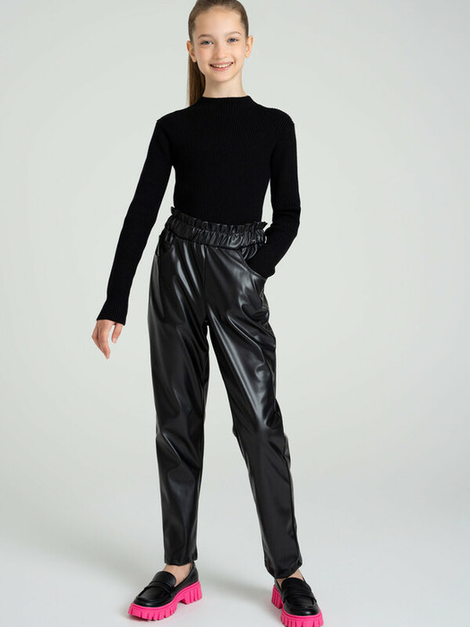 Брюки из экокожи. Mom fit - модная свободная посадка на бедрах с зауженным силуэтом от колена. Эластичный пояс для оптимальной посадки. Карманы по бокам.