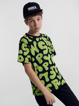 Детская футболка для девочки. Модель свободного кроя, выполнена из эластичного хлопкового трикотажа джерси. На груди расположен крупный принт с любимым персонажем Хэллоу Китти. По низу эластичная резинка.