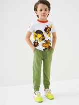 Детский костюм для мальчика. Состоит из футболки и шорт. Выполнен из хлопкового трикотажа. Футболка прямого кроя, с коротким рукавом. На плече застежка на кнопки для удобного переодевания. Яркий принт с милыми собаками. Шорты свободные, с эластичным поясом и шнурком для регулировки посадки.