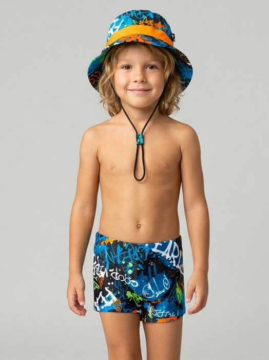 Комплект детский для мальчика, состоящий из плавок-шорт и панамы. Плавки-шорты короткие, прилегающего силуэта. Изготовлены из эластичного трикотажа, с подкладкой для большего комфорта. Ткань устойчива к солнцу и солёной воде, благодаря UF-защите сохраняет насыщенность цвета и структуру волокон. В поясе — удобная резинка и регулируемый шнурок. Панама классической формы, украшена ярким принтом. Оснащена удобным фиксирующим шнуром, который можно отрегулировать по длине. Отличный комплект для летнего отдыха и активностей на солнце.