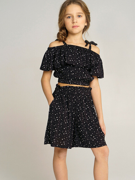 Комплект: топ, шорты. Приятный материал из 100% вискозы, обладающей высокой гигроскопичностью. Топ укороченный с завязками на плечах. Шорты средней длины. Широкий пояс.