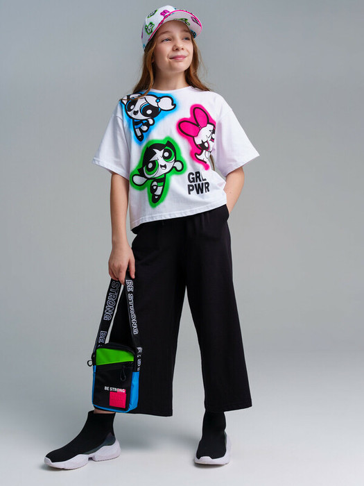 Комплект: футболка, кюлоты из качественного и приятного на ощупь трикотажа джерси. Высокое содержание хлопка 95%. Благодаря наличию эластана в составе ткани изделие проще в уходе и держит форму. Футболка прямого кроя. Кюлоты с эластичным поясом со шнурком.