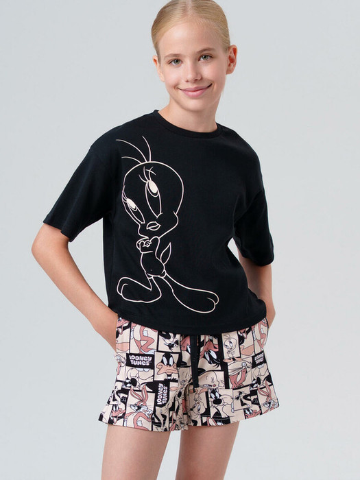 30.03 PlayToday Комплект трикотажный для девочек: фуфайка (футболка), шорты 125
