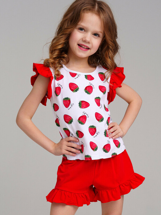 30.03 PlayToday Комплект трикотажный для девочек: фуфайка (футболка), юбка-шорт