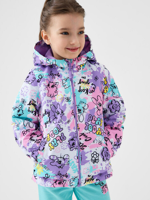 Ветровка детская для девочки. Температурный режим от +20С до +10С. Ткань с мембранным покрытием 5000х5000. Внутри флисовая подкладка. Капюшон несъемный с утяжкой стопперами. Боковые карманы на липучке. Внутренний карман на липучке. Манжеты на резинке. По низу изделия утяжка со стопперами. На рукаве и спинке есть светоотражающие элементы для безопасности в темное время суток.