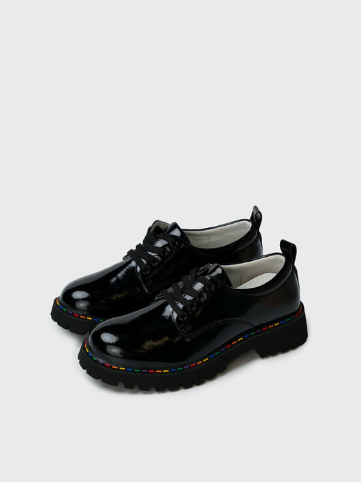 Полуботинки из искусственной лаковой кожи для девочки подростка. Полуботинки имеют цветной рант и в тон ему цветные шнурки. Но если вы хотите сменить образ, то в комплекте есть простые  черные шнурки. Подкладка и стелька - 100% натуральная кожа. Подошва из ТПР  не скользит и устойчива к истиранию. Высота каблука 3,5 см - очень комфортная для повседневной носки. Формоустойчивый задник поддерживает стопу в правильном положении. Эргономичная форма колодки обеспечивает правильное формирование стопы ребенка. Туфли для девочки школьницы отлично подойдут как сменка в школу, а также для прогулок: весна, лето, ранняя осень.