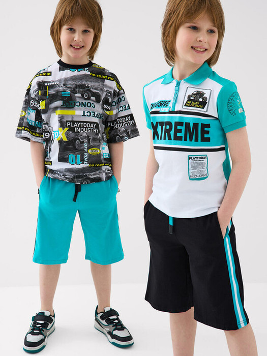 Набор шорт для мальчика подростка. В комплект входят две пары шорт свободного кроя, ниже колена. Модели из мягкого, хлопкового трикотажа джерси. Удобная посадка обеспечивается эластичным поясом со шнуром. По бокам расположены два кармана.