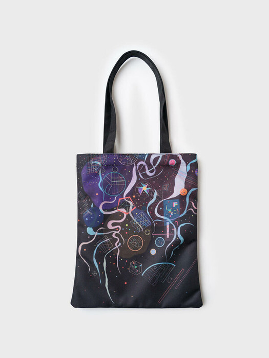 Легкая, вместительная и удобная сумка-шопер для девочки-подростка из коллаборации с Третьяковской галереей. Принт - фрагмент картины Василия Кандинского, Движение, 1935. Она не занимает много места, если ее сложить и носить с собой и использовать при необходимости. Параметры сумки: высота - 39 см (без ручек), ширина -33см, глубина - 1 см