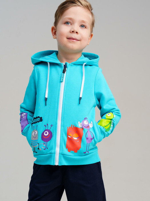 Толстовка детская для мальчика. Толстовка с высоким содержанием хлопка. Капюшон регулируется шнурком. Трикотажные манжеты. Застежка на молнию. Функциональные карманы.