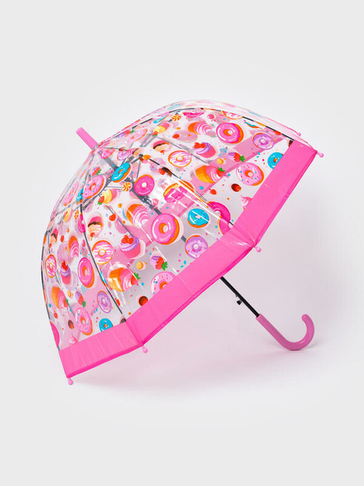 Зонт-трость с прозрачным куполом.  Яркий позитивный принт повышает настроение в дождливые дни. Идеально сочетается с резиновыми сапогами и дождевиком из коллекции. Длина 68 см, диаметр купола 70 см. Механизм складывания - механический.